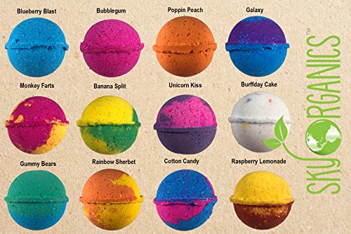 WE TAKE BATH TIME SERIOUSLY – Seriously fun, that is. Settle in for a wonderful immersion with an original Sky Organics invention, exploding with organic essential oils, organic coconut oil and tons of fizzy fun. Our bath bombs offer a relaxing, invigorating multilayered explosion of color and scent. They also contain “Bath Sprinkles” that make the water sparkle.