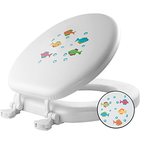 -. Title : Bemis Mfg 1366EC 000 Round School of Color? Embriodered Cushioned Vinyl Soft Toilet Seat, Easy-Clean & Change Hinge, Wh