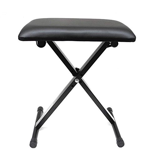 -. Feature : Color: Black / Large and comfortable padding: 15.8"L x 11.7"W / Non-slip rubber ends on legs / Collapsible for easy storage / Package Content: 1x Piano Bench