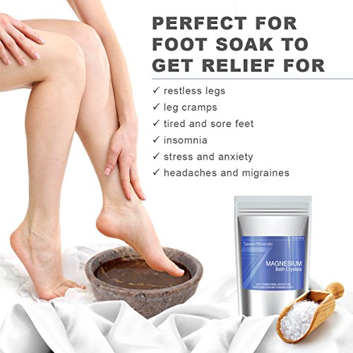NEW Seven Minerals Magnesium Chloride Bath Crystals For Relaxation - Foot Soak (9 uses)+ Full Bath Soak (5 uses) for Restless Legs, Cramps, Muscle Pain &...