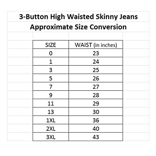 -. Feature : Approximate unstretched waistband, front rise, low hip and inseam. Hip sizing provided at average stretch then as range of min to max stretch; in inches. (Size 0: 25, 8.75, 31.5 (30-33), 29.5) - (Size 1: 25.5, 9.25, 32.5 (31-34), 30.5) - (Size 3: 27, 9.75, 34 (33-35), 30.5) - (Size 5: 28, 9.75, 35 (34-36), 30.5) - (Size 7: 28.5, 10.25, 36.5 (35-38), 30.5) / Juniors' sizing. Front rise measurements taken to to the top of the waistband. / Super Stretchy Material Ensures a Perfect Curve Conforming Fit For Every Build; stretches like a jegging with a feel, look and durability of real denim; jeans allow for up to an additional 2 to 2.5 inches of stretch at waistband and hips / Durable Dark Blue Stone Wash Stretch-Denim. / Breathable 98% Cotton Stretch Denim. These jeans provide incredible stretch.