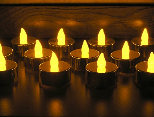LED CANDLES. BATTERIES INCLUDED: Each candle has an on/off switch. #CR2032 batteries are available everywhere. BATTERY OPERATED CANDLES Electric battery powered candles are the safe and smart way to give ambiance to a room. Realistic Flickering glowing Tea lights with Hours of Lighting. Long lasting bulbs flicker gives a realistic effect of yellow light that gives a charming warm glow of traditional candles.