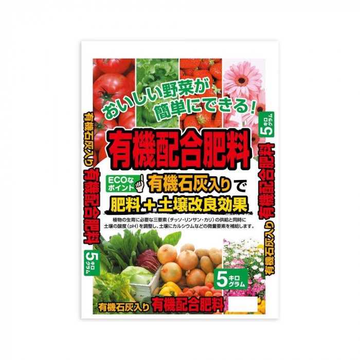 | 有機配合肥料と天然有機石灰を混合した肥料です。これだけで土壌改良効果と肥料効果があり、従来の手間(石灰を施し、肥料を施す)を省き、健康でおいしい野菜を育てます。 |