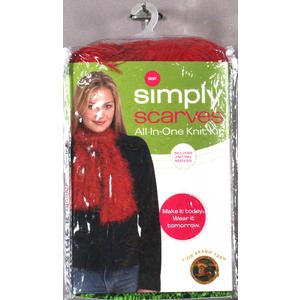- Rio easy knit scarf kit includes 1 ball jiffy #114 true red, 1 ball fun fur #113 red and 1 pair of size 17 (6mm) knitting needles