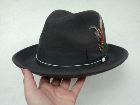 Product Description100% Wool Felt 2 1/2" Brim Dark grey with grey band0