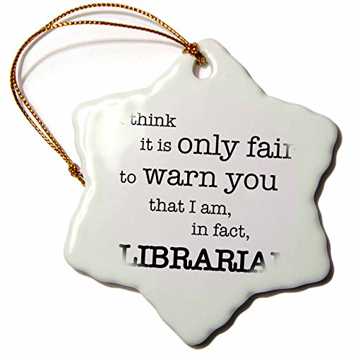 3dRose orn_157427_1 I Think it is Only Fair to Warn You That I Am in Fact a Librarian Library Teacher Book Porcelain Snowflake Ornament, 3-Inch