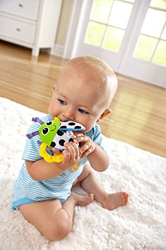 - Feature : Soft peek-a-boo rattle with two sides of play / Teethable "wing" handles / Features include rattle, crinkle, texture / Easy to grasp handle / High contrast colors stimulate baby's vision / Peekaboo flap wings / Crinkle & Jingle / Knottie antennas and textured teether handles stimulate baby's gums / Ages birth and up