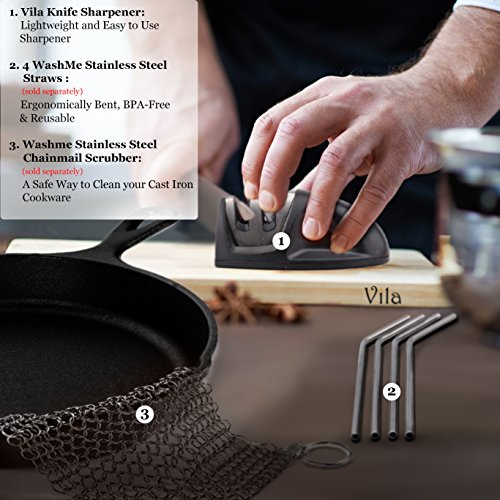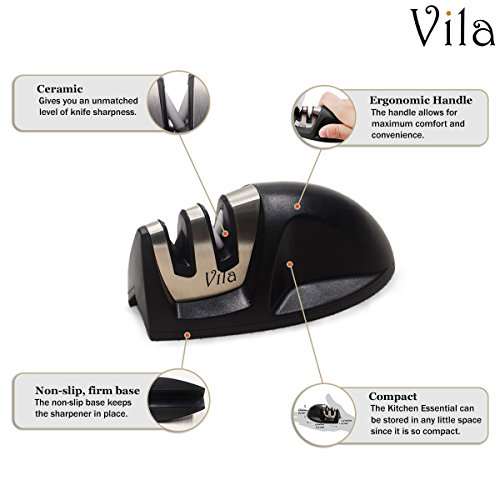 Vila Knife Sharpener with Dual sharpening slots: Polishes and hones blades to Razor Sharpness : Must-have kitchen utensil with Stylish, Ergonomic design : Secure grip and Compact for easy storage