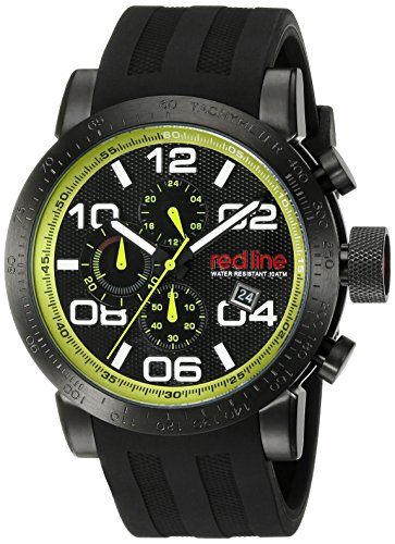 -. Binding : Watch -. Brand : red line -. Department : mens -. EAN : 0722630589648 -. Feature : Chronograph functions with 60 second, 30 minute and 24 hour subdials; date window at 4:00 / Black textured dial with light green border, black, white and light green hands, white hour markers and Arabic numerals; luminous; screw-down crown with red logo accent; tachymeter; mineral crystal; black ion-plated stainless steel case; black silicone strap / Quartz Movement / Case Diameter: 48mm / Water Resistant To 330 Feet -. Label : Red Line -. Manufacturer : Red Line -. Model : RL-50068-BB-01-GRN -. MPN : RL-50068-BB-01-GRN -. PackageQuantity : 1 -. PartNumber : RL-50068-BB-01-GRN -. ProductGroup : Watch -. ProductTypeName : WATCH -. Publisher : Red Line -. Studio : Red Line -. Title : red line Men's RL-50068-BB-01-GRN Night Rally Analog Display Quartz Black Watch -. UPC : 722630589648