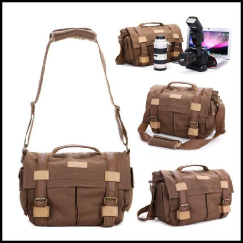 DSLR Slr Camera Bag, MOACC BrownDigital Video Recorder Ptotography Canvas Sling Backpack Protective Rucksack Waterproof Shoulder Messenger with Shockproof Inseert for Sony Canon Nikon Olympus Pentax