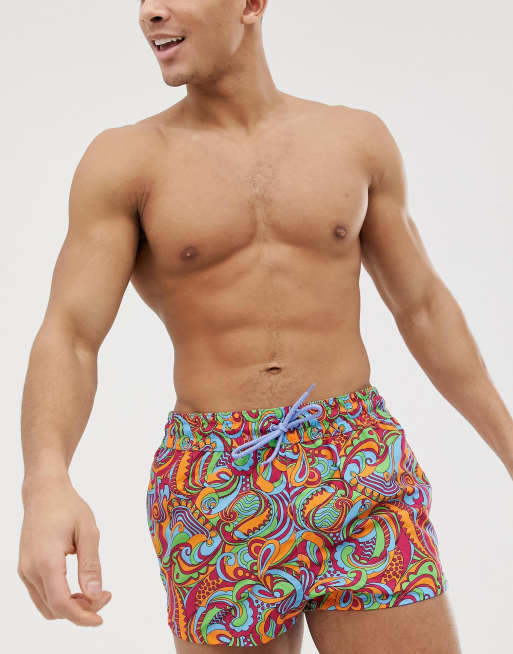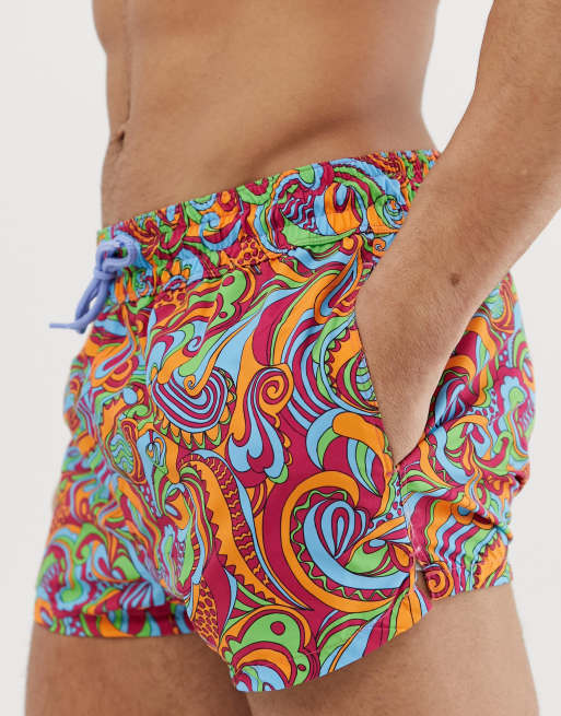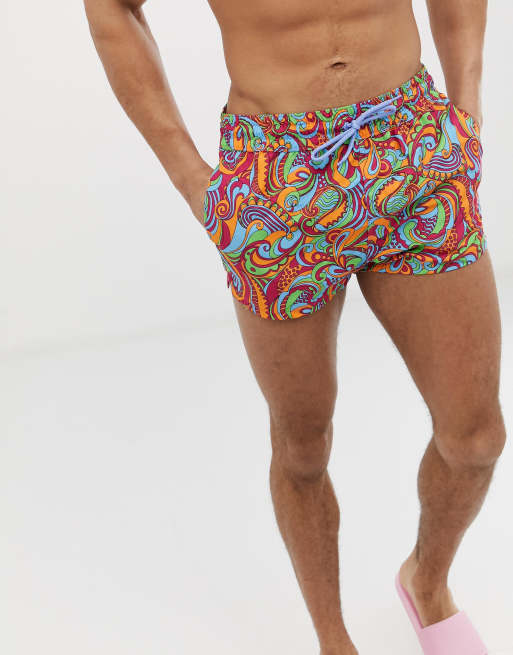 ASOS DESIGN Swim Shorts With Bright Retro Print In Super Short Length