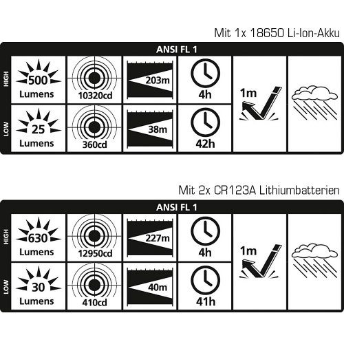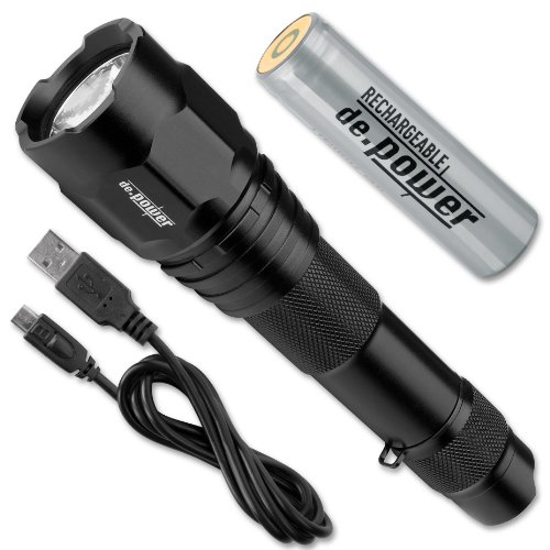 de.power DP-025USB-C via USB rechargeable- LED Aluminium Flashlight- Li-Ion Battery - up to 630 Lumens (ANSI)