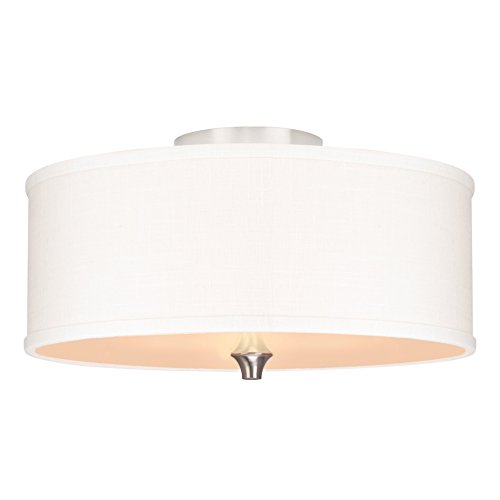 Revel Newport 14" 2-Light Semi-Flush Mount Ceiling Light + White Linen Drum Shade, Brushed Nickel Finish