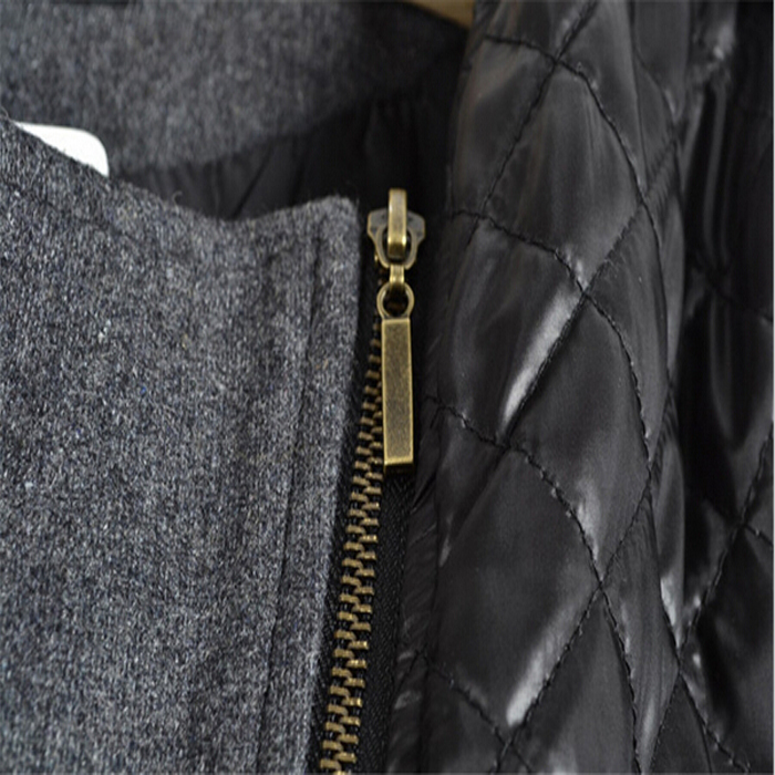 2017 New Arrival Autumn Winter European Style Fashion Quilting Stitching Woolen Coats Ladies Long Sleeve Zipper Hot Sale