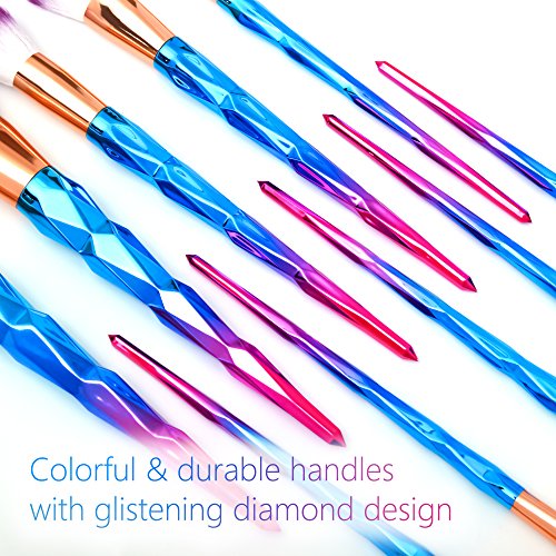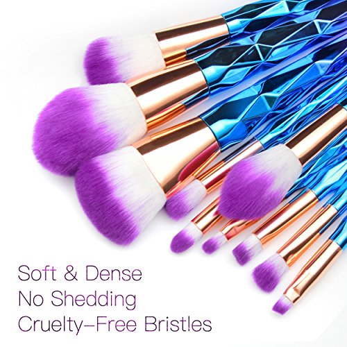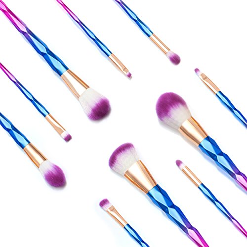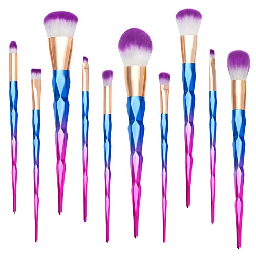 Unicorn Makeup Brushes, Qivange 10 PCS Gradient Diamond Eyeshadow Face Makeup Brush Set