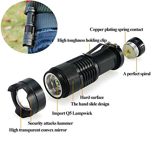 Pocketman 7W 300LM SK-68 3 Modes Mini Cree Q5 LED Flashlight Torch Tactical Lamp Adjustable Focus Zoomable Light