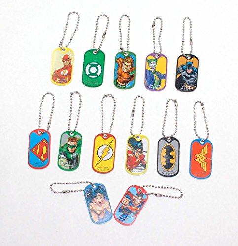 -. Feature : Complete Set of 13 Dog Tag Key Chains. Featuring Superman, Wonder Woman, Batman, Green Lantern, The Flash, Aquaman, Robin, and The Joker. / Dog Tags measures approximately 2" x 1" and the ball chain measures approximately 4" long / This is a great set for your DC Comic fan. / Great as a key chain, zipper pull or party favors / Officially Licensed DC Comic product.