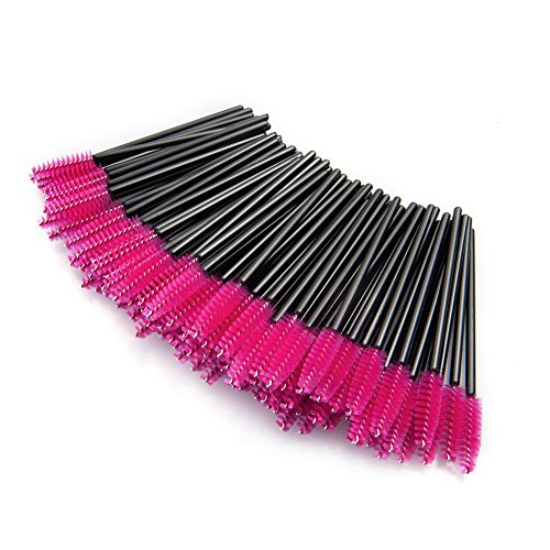 Disposable Mascara Wands 100 PCS Eyelash Brushes Bulk Applicators Silicone Eye Lash Makeup Applicators Kit, EIISON, Pink