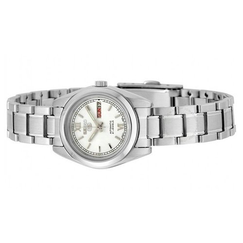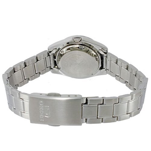 Characteristic of Seikos signature elegance and style this classic timepiece provides much-needed flair for any affair Composed of a 25mm silver stainless steel case and a silver stainless steel band and fold over clasp this classy watch incorporates durability into luxury to produce an unparalleled timekeeping accessory The analog display and silver dial are protected by a sturdy mineral crystal and is powered by a high-quality automatic-self-wind movement All of this is secured by a 30 meter water resistance proving the watch to be a reliable accessory to portray panache with ease Additional features include day and date display and measures secondsFeature