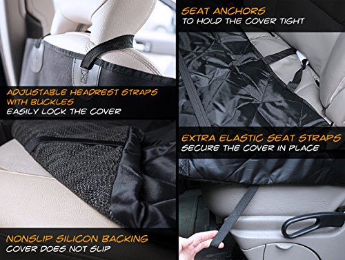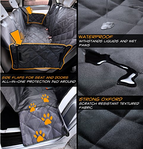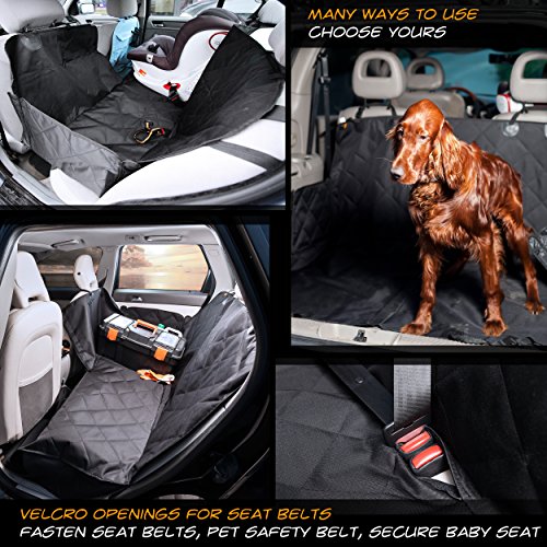 Seat-And-Door Protection All-In-One - side flaps provide 360-Degree protection Extra Space for Back Seat Passenger - unzip the front hammock and get leg space for your passenger Well Fixed and Easy to Install - silicone backing, seat anchors, buckle straps and even more Waterproof and Tough 3 Layer Design - strong and waterproof oxford cloth Quilted, Padded, Comfy - comfort for your pet Easy to Clean Machine Washable - cleaning is not a problem Free Bonuses Come with Each Item - dog car seat belt light and simple sackpack 30 Days 100% No Questions Asked Money-Back Guarantee - check the cover out, and more importantly, put it to work, but if it's just not for you we don't want to keep your money. Absolutely RISK FREE!