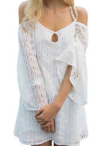 Title : Happy Sailed Women Off Shoulder Lace Backless Crochet Beachwear Cover up Dresses, Medium White