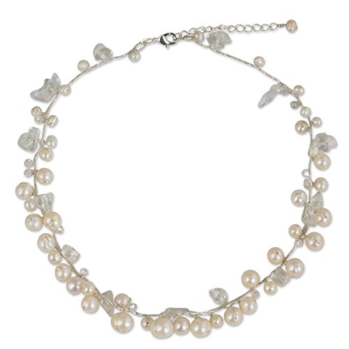 About this item: Pearls glisten with elegant allure in a design from Thailand's Sasina. They are threaded by hand on silk core creating the illusion of a flowing river splashing with glass beads. Stainless steel clasp and extender chain. 16.25"
