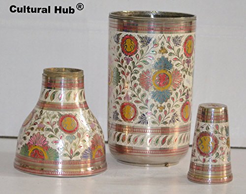 J92-400-0087 Hand Crafted Engraved Brass Made Wine Bottle Covers Elegant Royal Look, Beautiful Pattern and Rich Design (Flower Meenakari)