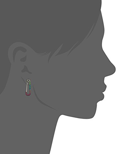 hematite and gold safety pin post earring with bright colorful stones