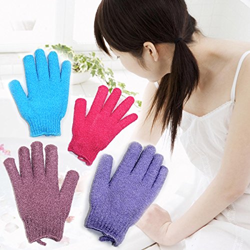 YEYIMEI Exfoliating Shower Gloves Scrubber Bath Gloves for Men, Women & Kids 4 Pairs (Package-003)