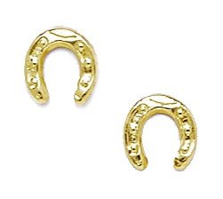 14k Yellow Gold Horse Shoe Shape Stamping Children Earrings - Measures 8x7mm - in 14k Yellow Gold - JewelryWeb Style: MDE183234Y - FREE gift-ready jewelry box