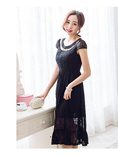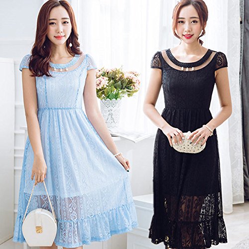 -. Title : 半袖レースロング丈 レディースドレスアップワンピース フォーマル きれいめ ブラック ブルー LL 3L 4L 5L 大きいサイズ