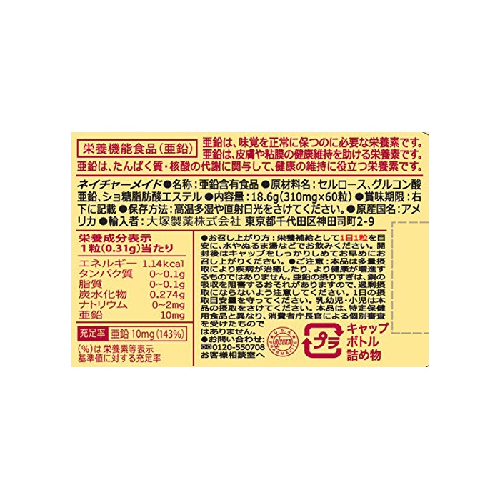 NATUREMADE 오오츠카 제약 네이쳐 메이드 아연 60알