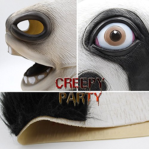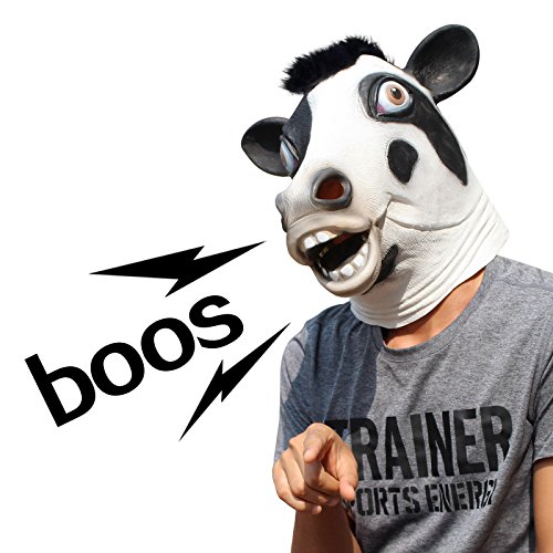 -. Feature : The moo will make you unique in your party. Keep the switch on just like the piture 2, it moos when shaking the mask. / Comfortable and breathable,See through the nostrils and mouth hole. If you want a better visibility and breathability, it's not hard to do and it doesn't ruin the look of the mask if you enlarge the nostrils and mouth hole a bit. / Looks goofy and surreal, Much creepier in fact than the picture shows. / Perfect for a fun meme, Halloween, Christmas, Easter, Carnival, Costume parties, Tag party or simply for going to a night club. Anyway, it will see plenty of use at times other than Halloween! / CreepyParty is an Amazon Registered Brand. More funny and creepy mask, please visit our store CreepyParty-seaton: http://amzn.to/21KCUur