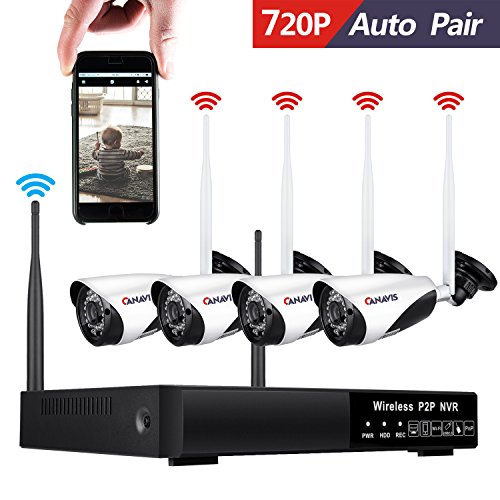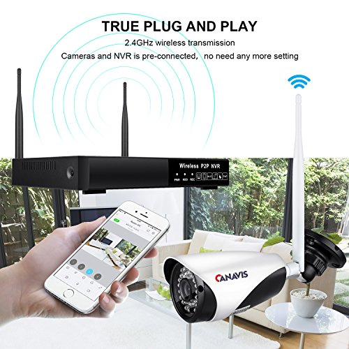 CANAVIS HD 1280×720 Res CCTV Wireless 1MP Security Network Camera System Android Compatible IP66 Weatherproof Outdoor 960P Wifi NVR Surveillance Recording Cam With 3.6mm Lens 65 Ft. Night Vision