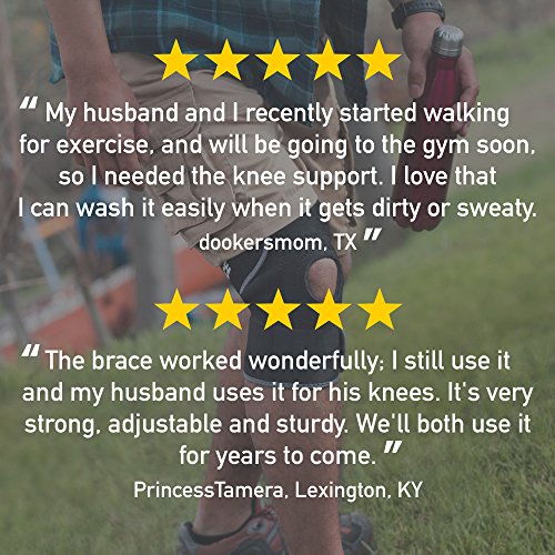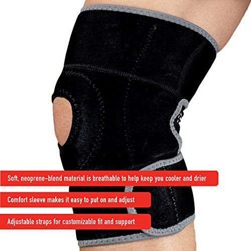 -. Feature : Provides compression to stiff, weak, or sore muscles and injured knees / Comfort-sleeve makes it easier to put on and adjust / Soft, neoprene-blend material is breathable helping keep you cooler and drier / Designed to fit the contours of your knee / Adjustable straps for customizable support