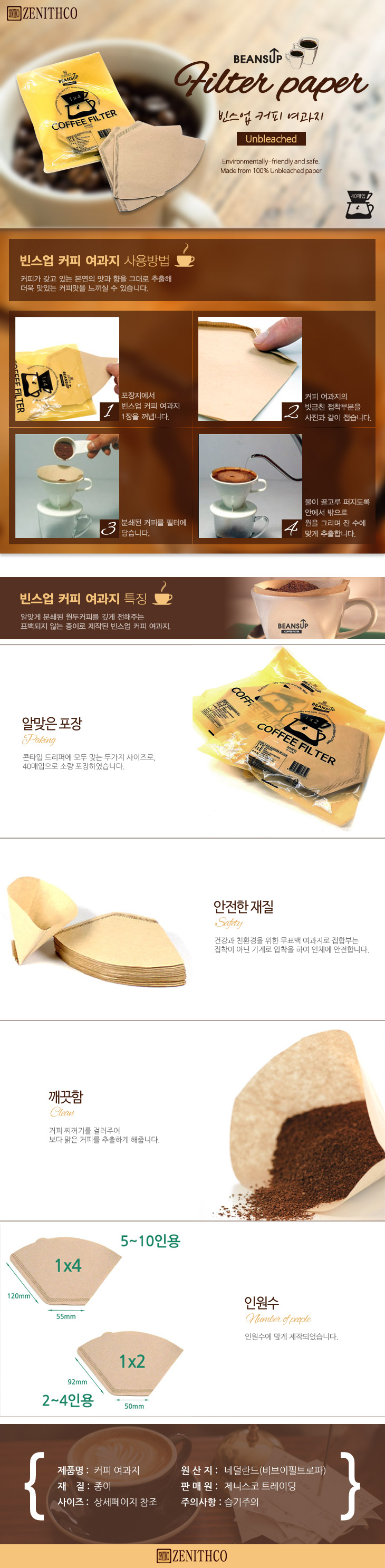 상품명 : 제니스코 빈스업 커피 여과지 2~4인용 40매