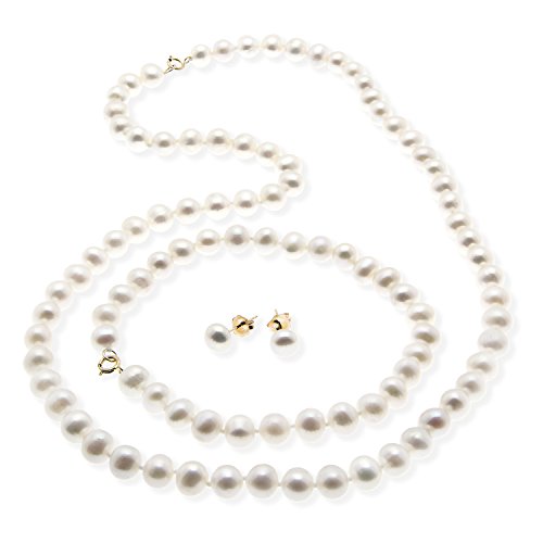 Pearls are timeless and classic as seen in the 3-piece Freshwater cultured pearl earring, necklace and bracelet set