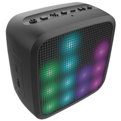 -. Feature : Bluetooth: connect wirelessly with any Bluetooth device in a 30-foot range. / Rechargeable: fully charge to provide up to 5 hours of play time. / Light show: choose from 36 LED light party programs that sync with your music / Speakerphone: answer calls directly from your trance Mini speaker. Voice prompts: listen up! your speaker tells you what it's doing (powering on, connecting, etc.). / Rubberized Exterior: party on - this speaker's Exterior is designed for protection.