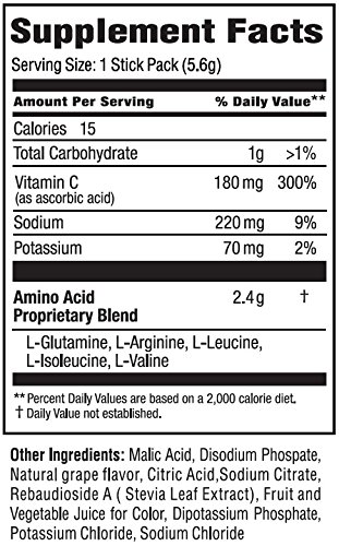 Plant-based amino acids (BCAAs, Arginine, Glutamine) + electrolyte drink mix provides healthy hydration, energy and focus.*