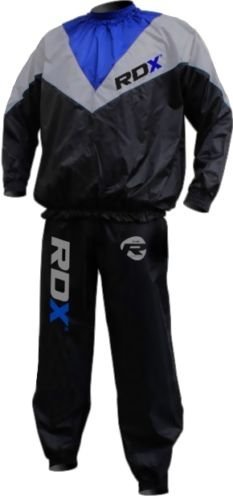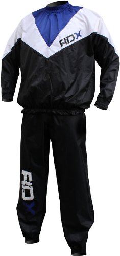 Studio : RDX Publisher : RDX Binding : Misc. Product Description The RDX Weight loss Sauna Suit looks just like a high-fashion sweat suit on the outside, but has a concealed unique EVA nylon material. Complete set includes long sleeve, pullover top and pants. Rugged elastic surrounds the cuffs, waist, waistline ankles and neck for unbelievable air retention and sauna action. Oversized fit provides top results. The RDX Weight loss Sauna Suit allows you to triple your weight loss by using your own body's natural heat to melt away unwanted fat and water weight. Once you put on the RDX Sauna Suit, all you have to do is move around and exercise to stimulate the body. Through perspiration, the body will naturally excrete unwanted pounds. The RDX Sauna Suit works just like the expensive warm body-wrap treatments at the luxurious health spas. The RDX Sauna Suit will help you reduce your entire body weight, evenly eliminate cellulite, get rid of that unattractive stomach pouch, shrink those love handles, and improve muscle tone and definition all over. RDX Sauna Suit is an effective sweat aid which uses natural body heat generated from any type of low or intensive high-energy physical exercise to increase perspiration during your work out. This sweat excretion process through perspiration stimulates the entire body, thus helping to rid the body of excess water weight gain, and evenly melts away unwanted body fat! The RDX Weight loss Sauna Suit is designed as a unisex workout suit that will accommodate both men and women in a variety of comfortable sizes: M,L,XL,XXL. 0