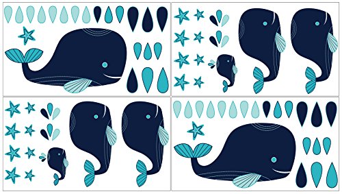Blue Whale Girl or Boy Baby and Kids Wall Decal Stickers - Set of 4 Sheets