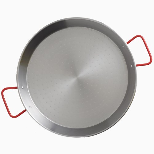 -. Feature : Genuine Paella Pan imported from Spain / Made from hammered carbon steel with a dimpled bottom which distributes the heat evenly and quickly, making it the most common and popular paella pan type in Spain / Just like carbon steel woks, they will acquire a natural patina over time and simple need a wipe down with oil to keep from rusting P.R.Ior to storage, after cleaning it with a soft non-abrasive soap / Perfect size for 6 servings / Can be used on a stove top, oven, gas barbeque grill or open flame, or for better results, over a paella burner which we also carry