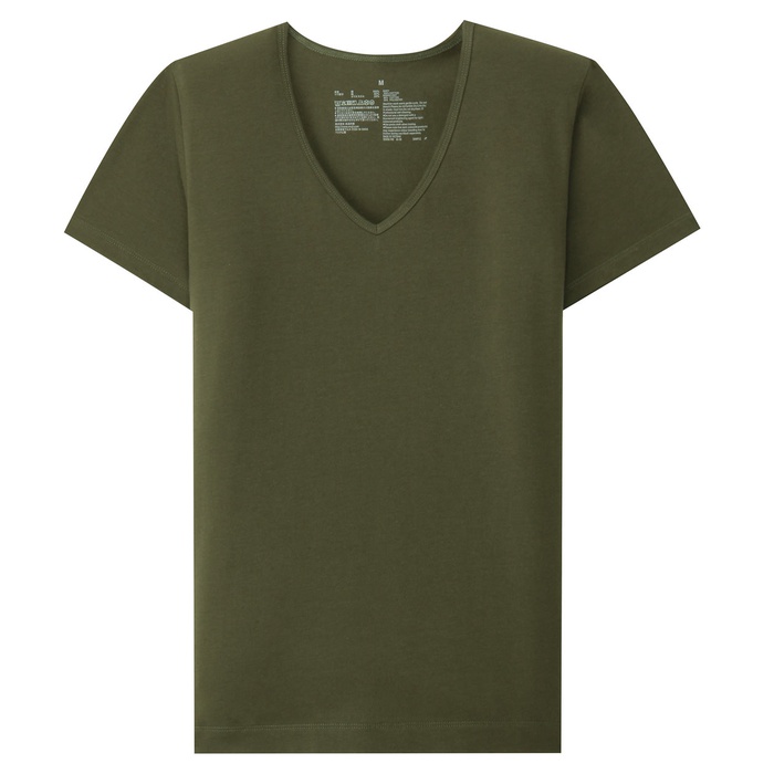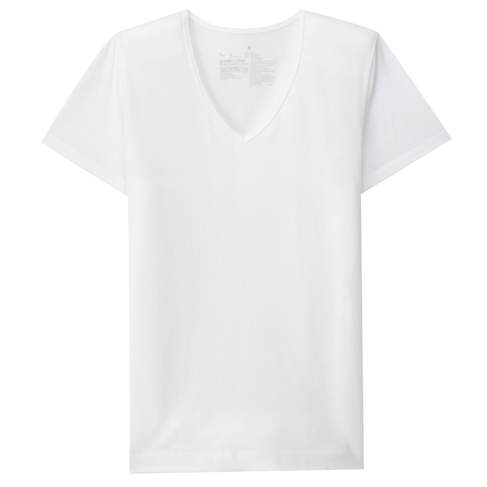 Muji 땀이 배어 하여 어려운V넥 반소매T셔츠 부인L흰색