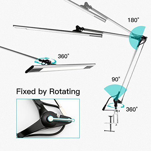 - ★Adjustable Swing Arm Lamp - Rotating base, hinged arm and swiveling LED panel helps you manipulate the lamp head in multiple-angles.The adjustable head lamp can be moved 180°up and down, and 360°right and left. 15.7+18.5" extendable long arm can be folded to 21.6"