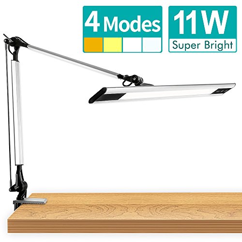 Amico 11W LED Architect Desk Lamp / Clamp Lamp/ Metal Swing Arm Task Lamp (Eye-Protective, Touch Control, 4-Level Dimmer / 4 Lighting Modes, Memory Function) Adjustable Drafting Work/Office Light