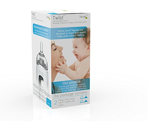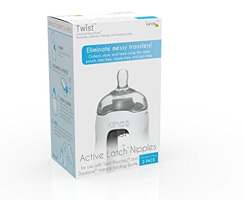 -. Binding : Baby Product -. Brand : Kiinde -. EAN : 0853852003084 -. Feature : Active Latch nipples are designed to teach and reward deep, wide, natural latching. By requiring suction AND massaging of the nipple, they are designed to discourage "lazy latching", and to ease the transition between bottle and breast. / Patent-pending 1-piece nipple means there is only 1 food-contact part to clean! No leaks, threads, lock rings, or complicated venting parts. / Active LatchTM nipples pop directly into Twist Pouches (sold separately), eliminating the need to transfer milk from bags to bottles and back again. / Feed directly from Kiinde Twist PouchesTM (sold separately)! Transfer-free, gas-free, and leak-free. Each nipple includes a rigid storage case that protects nipples during transport and keeps them clean. The tops of the cases also double as bottle covers for the Kiinde SqueezeTM natural feeding bottle. / Feeding from Twist Pouches can completely eliminate gas from your baby's meal. The pouch collapses as your baby drinks - eliminating air, and eliminating the need for complicated venting parts. -. Label : Kiinde -. Manufacturer : Kiinde -. Model : SN-M-002-NA -. MPN : VJW-009 -. PackageQuantity : 2 -. PartNumber : VJW-009 -. ProductGroup : Baby Product -. ProductTypeName : BABY_PRODUCT -. Publisher : Kiinde -. Studio : Kiinde -. Title : Kiinde Active Latch Natural Feeding Nipples - Medium Flow - 2 Pk -. UPC : 853852003084