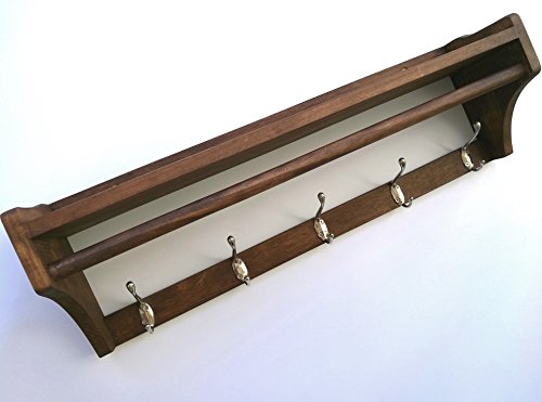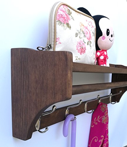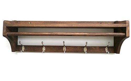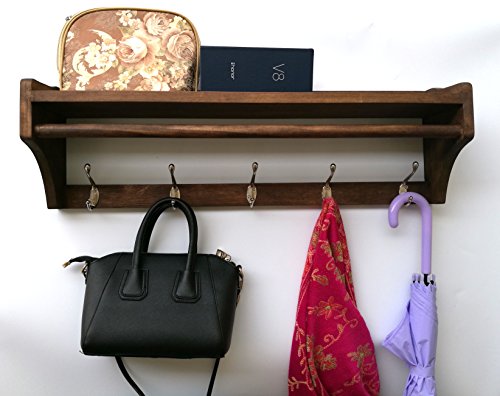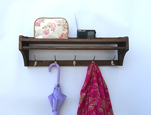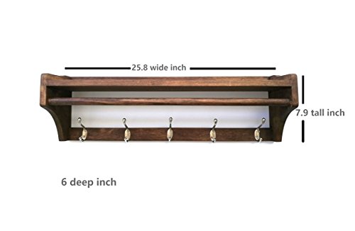 Wood Coat Rack Wall Shelf Wall Mounted Entry Way Coat Rack 25.8wide inch 5hook 1shelf