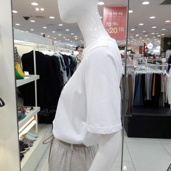 18년 신상 기본 라운드 면티셔츠입니다 깔끔하고 단정한 디자인에 가슴 레터링 포인트가 예쁘며 청바지 스커트 슬랙스에 모두 잘 어울리는 아이템입니다