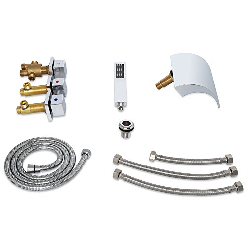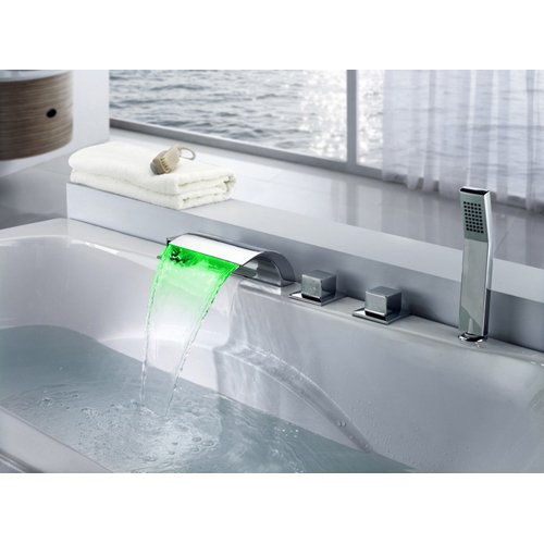 Lovedima Victoria Bathroom Waterfall Bathtub Faucet Set LED Roman Tub Filler with Handheld Shower