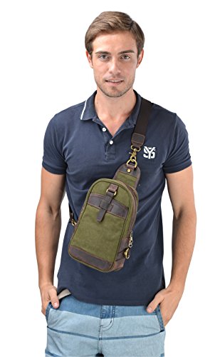 -. Brand : Gootium -. Department : mens -. Feature : Material: high density washed canvas and genuine leather trim. / Chest Pack dimensions: L 6.8 x W 2.8 x H 9.6 inch and weighs:1.1 lbs. / Interior lined with soft pearl-sail-canvas fabric. / Fashion, multi-function and practical design, and comfortable to wear. / The Gootium Canvas Sling Bag will be suitable for any gentleman or busy lady with an active lifestyle. -. Model : 40664 -. PackageQuantity : 1 -. ProductGroup : Apparel -. ProductTypeName : LAGE -. Title : Gootium Vintage Canvas Real Leather Trim Sling Bag Cross Body Chest Pack Unbalance Backpack